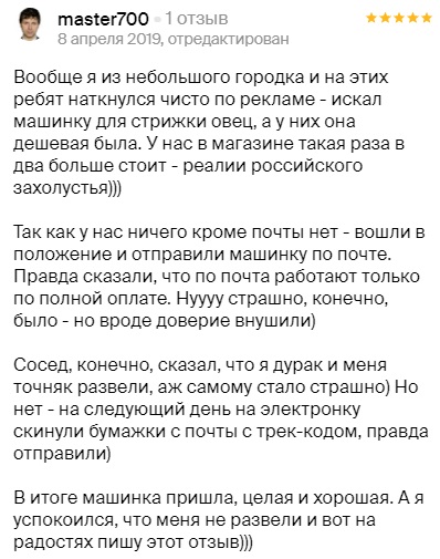 Но не мы! Мы отправляем с оплатой при получении 95% своих заказов.